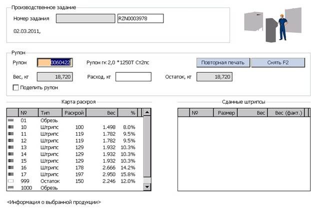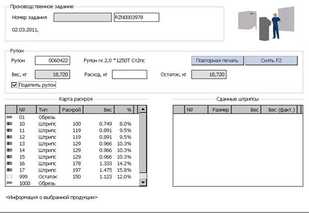 После печати бирок на порезанные и взвешенные штрипсы галка снимается автоматически. И для корректного отображения веса рулона необходимо отсканировать бирку рулона вновь. Вес рулона в данном случае покажет: если использовался теоритический вес – то половину веса рулона. Если использовался фактический вес, то остаток веса непорезанного рулона(Вес рулона минус вес взвешенных штрипсов).